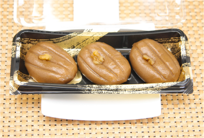 もちっとした生地で黒蜜を包み、くるみをトッピングした、風味豊かな郷土菓子です。
